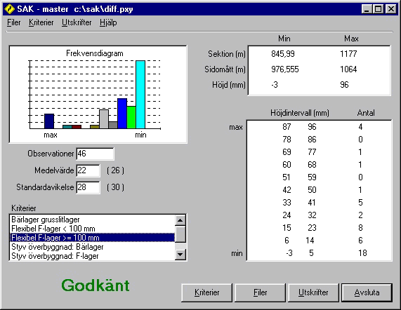 SAK-master är ett program för att utföra statistisk acceptanskontroll av väg och banobjekt mer produktionsfördelaktigt. Programmet läser "pxy-filer" skapade i geodesiprogrammet GEO från (Svensk Byggnadsgeodesi AB)